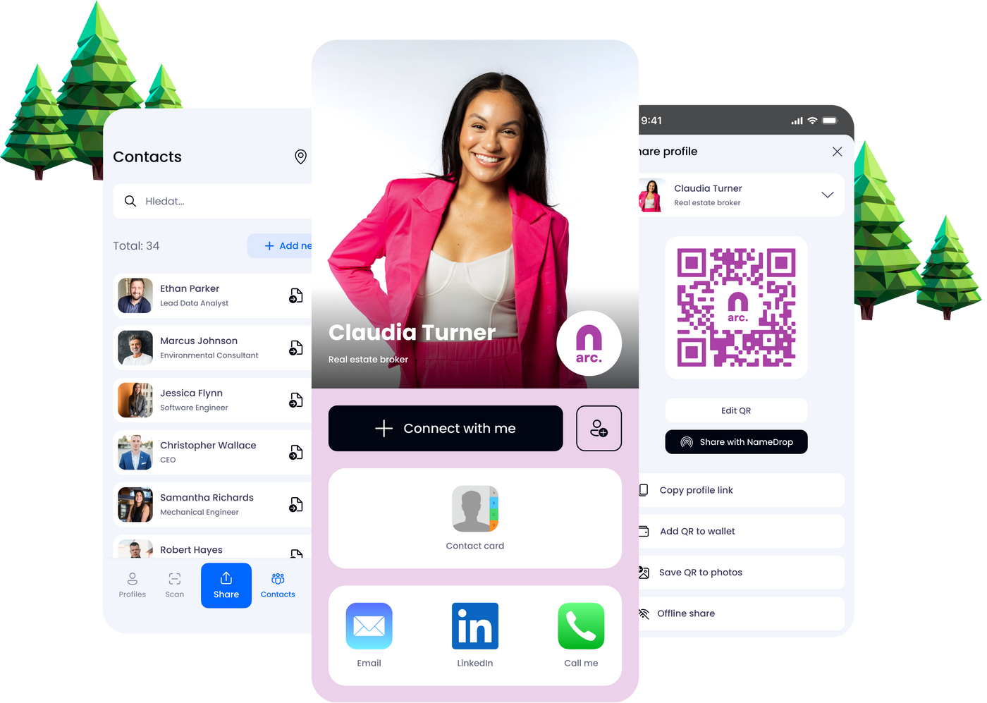 Our mobile app provides a solution for sharing your information completely digitally and with a zero carbon footprint.